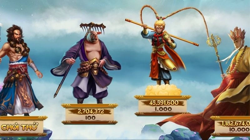 Với thiết kế đồ họa ấn tượng, các nhân vật quen thuộc như Tôn Ngộ Không, Trư Bát Giới, Sa Tăng và Đường Tăng xuất hiện đầy sống động qua từng vòng quay. Trò chơi tạo cảm giác như bạn đang trực tiếp tham gia vào cuộc hành trình kinh điển, kết hợp giữa yếu tố giải trí và kịch tính của một trò chơi trúng thưởng hấp dẫn.